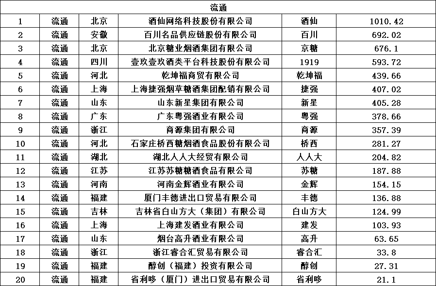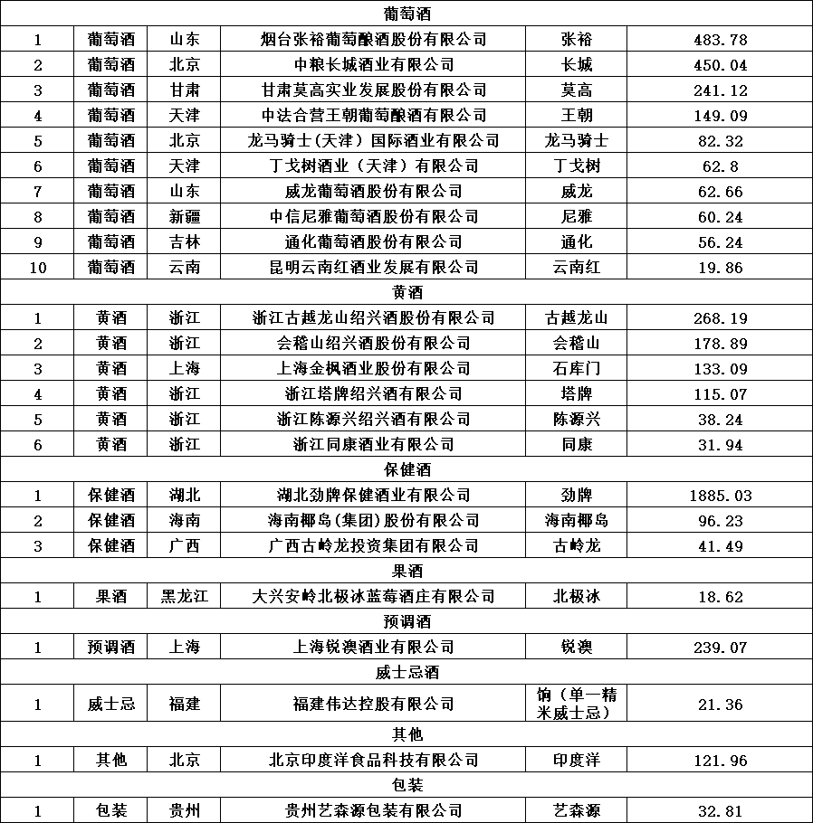 榜单分为白酒、啤酒、葡萄酒、黄酒、保健酒、果酒、预调酒、威士忌、酒类流通商、包装商及其他。