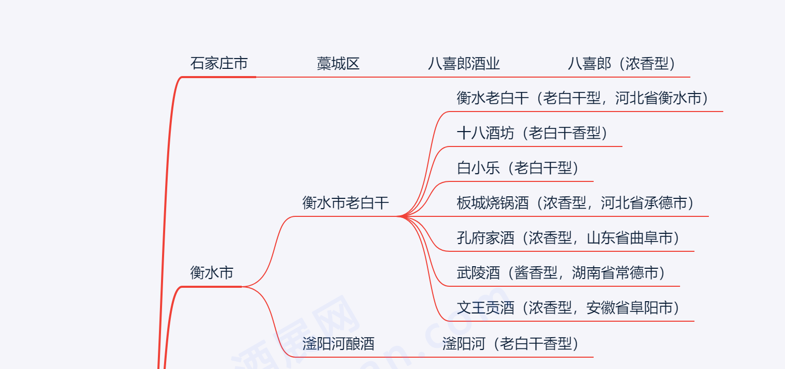 ?其他:五姑春酒、滴流酒、塞罕坝、泥坑、龙潭大曲、鹿全春、清香大曲、冀峰酒、热河大曲、甘陵春酒、燕南春。