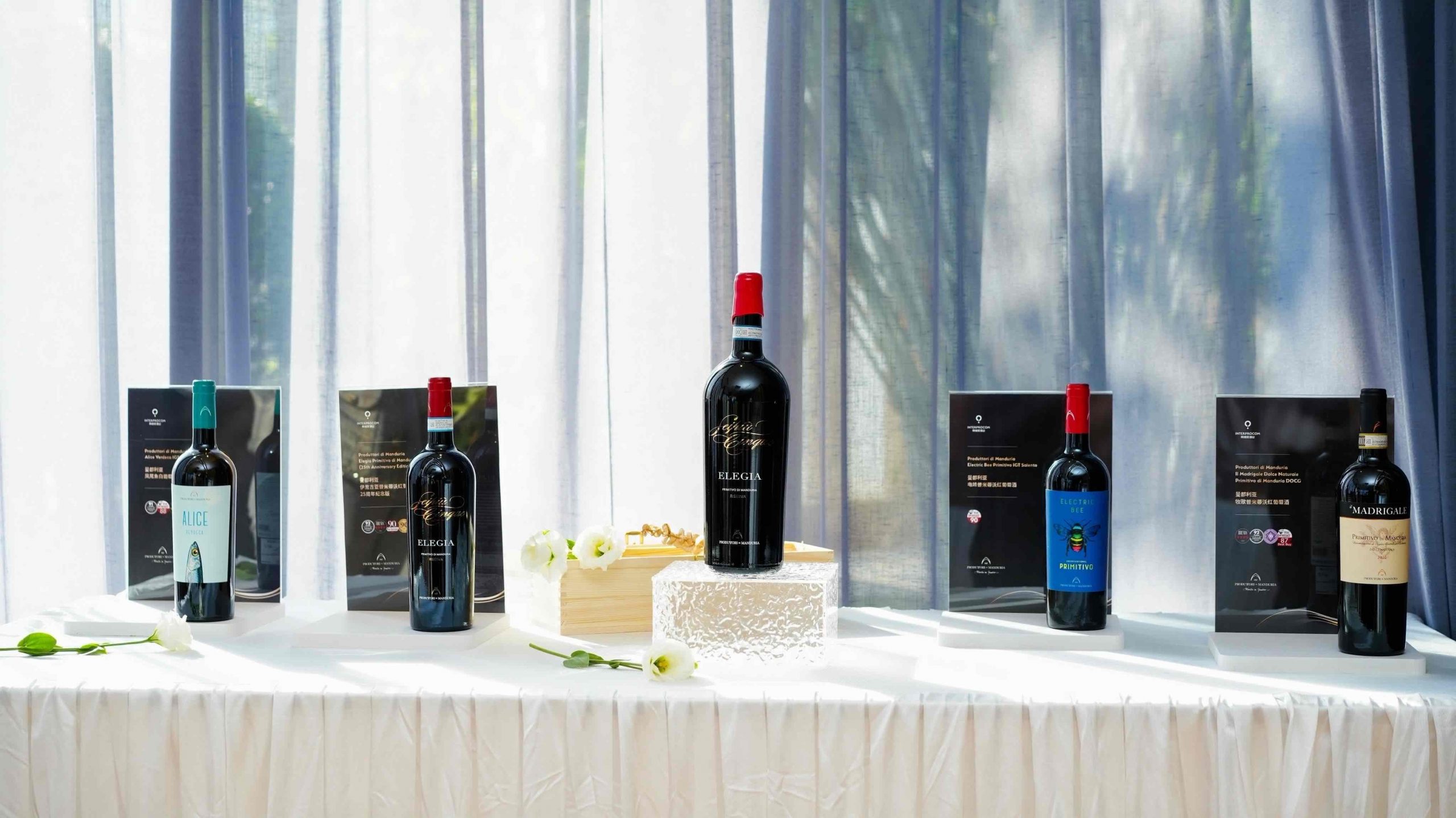 仪式结束后,嘉宾们在轻松氛围中自由品鉴曼都利亚酒庄的四款代表性佳酿:从清新明快的风尾鱼白葡萄酒 Alice Verdeca IGT,到深邃复杂的伊里吉亚普米蒂沃红葡萄酒 Elegia Primitivo di Manduria Riserva DOC,再至富有表现力的电蜂普米蒂沃红葡萄酒 Electric Bee Primitivo IGT Salento,以及甜美自然的牧歌普米蒂沃红葡萄酒 Dolce Naturale Primitivo di Manduria DOCG。这四款酒由浅入深,层层铺展,共同勾勒出一幅完整而立体的曼都利亚风土长卷——每一口,皆如品读一行韵脚。
