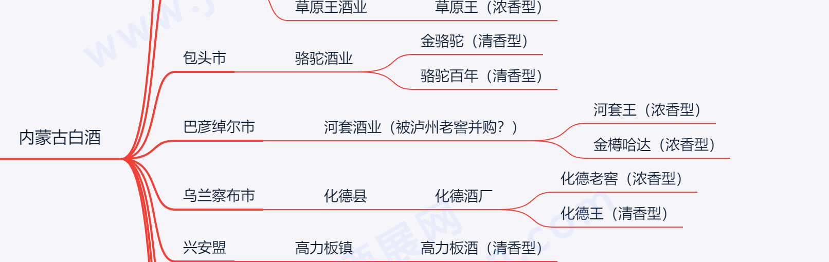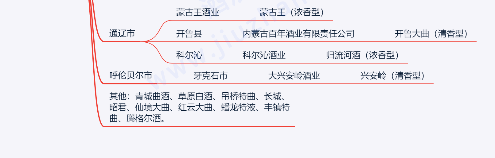 ?其他:青城曲酒、草原白酒、吊桥特曲、长城、昭君、仙境大曲、红云大曲、蟠龙特液、丰镇特曲、腾格尔酒。
