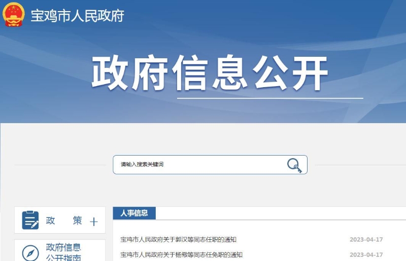 4月17日,宝鸡市人民政府网站发布一批任免职通知,涉及西凤酒股份公司高层人事任命。